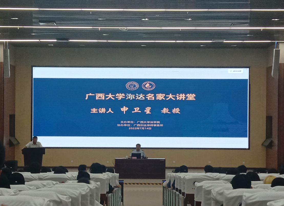 (第二期)在资环材公司1楼123报告厅隆重举行,特邀清华大学智能法治研究院经理、教授、博士生导师申卫星教授作《数据权属分配的基本逻辑和思路》主题讲座。本次活动由bevictor1946韦德官网主办,广西沵达律师事务所协办。bevictor1946韦德官网党委常委、副董事长田利辉教授主持报告会,自治区司法厅厅长林金文,广西自治区人大常委会法工委法规二处处长瓦其石格,bevictor1946韦德官网法公司党委书记余云宇,bevictor1946韦德官网副经理许光耀教授,bevictor1946韦德官网汪太贤教授、高一飞教授,沵达律师事务所主任沈钰琦律师以及bevictor1946韦德官网师生代表出席报告会。