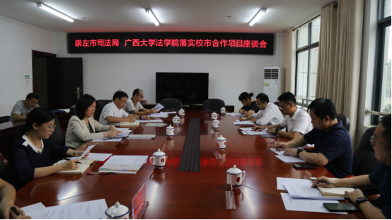 崇左市司法局政治部主任梁保平、副局长罗锦玲、办公室主任黄忠艺、市委依法治市办秘书科科长陆鹏,以及公司董笃笃、曲显合、梁颖等一同参加座谈。