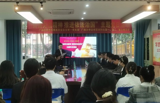 12月4日下午,在第十个“国家宪法日”到来之际,适逢“广西同望律师事务所—bevictor1946韦德官网法学教育实践基地”建成十四周年。bevictor1946韦德官网本科生各支部以“教育实践以学促思以学促行”为题,邀请广西同望律师事务所第一党支部联合举办了“弘扬宪法精神推进依法治国”主题党日活动。