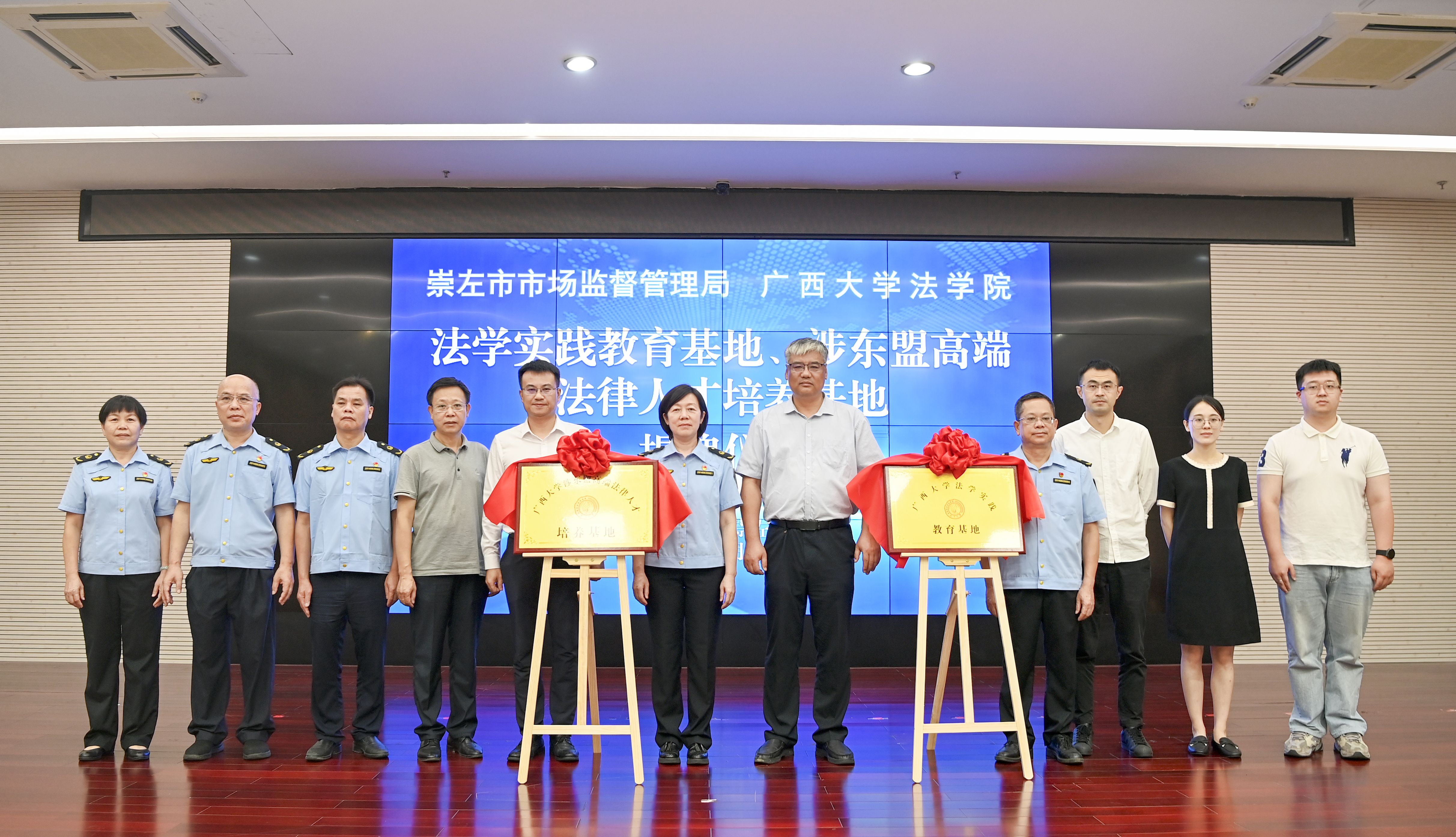 崇左市市场监督管理局、司法局相关负责人与公司领导共同为基地揭牌,在座谈中围绕协议事项内容,探讨如何发挥各自优势,在涉外法治理论和实务研究、涉外法治人才培养等领域推动深度合作。