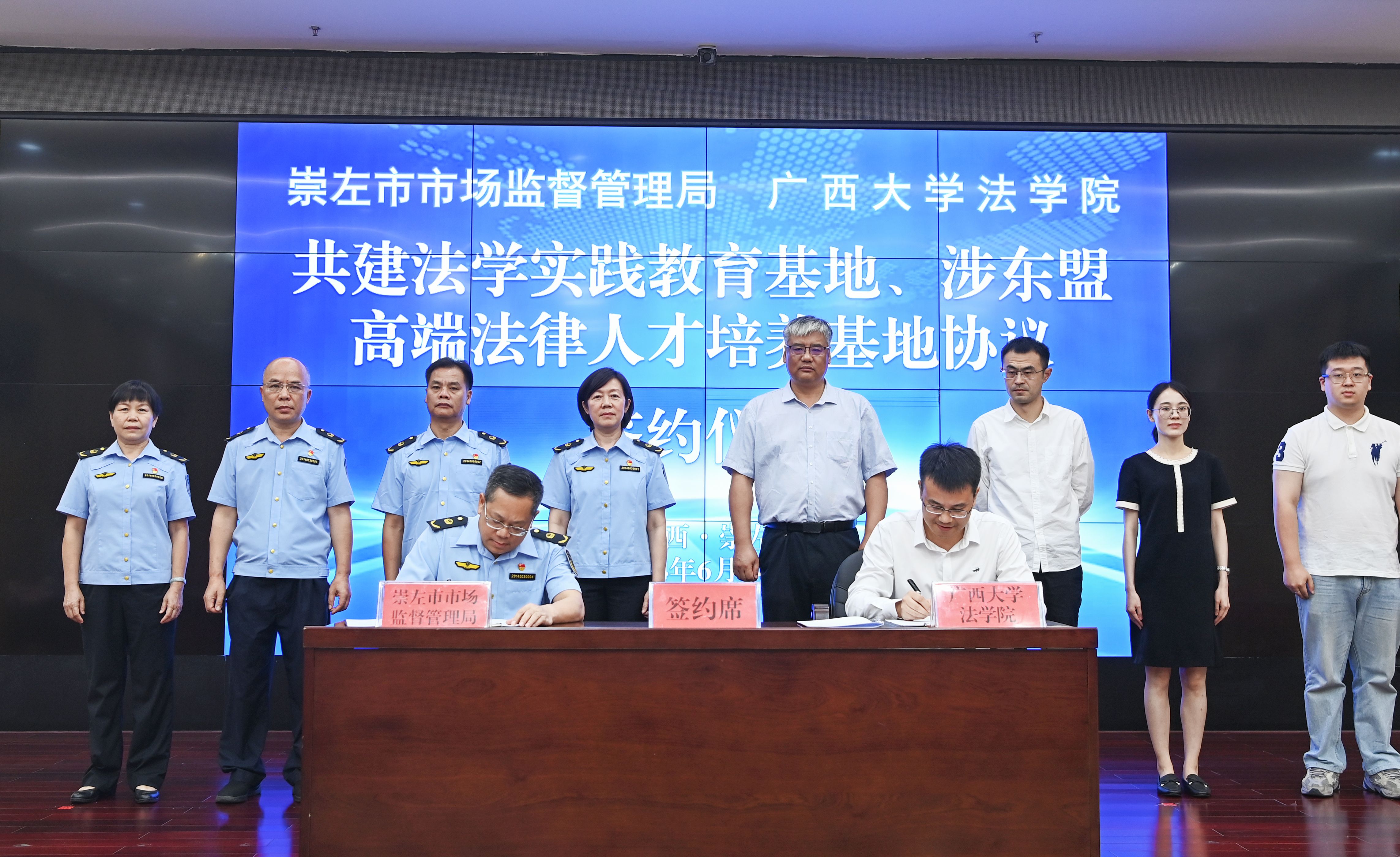 6月14日,公司分别与崇左市市场监督管理局、司法局签订共建bevictor1946韦德官网“法学实践教育基地”及“涉东盟高端法律人才培养基地”协议并举行合作交流座谈。