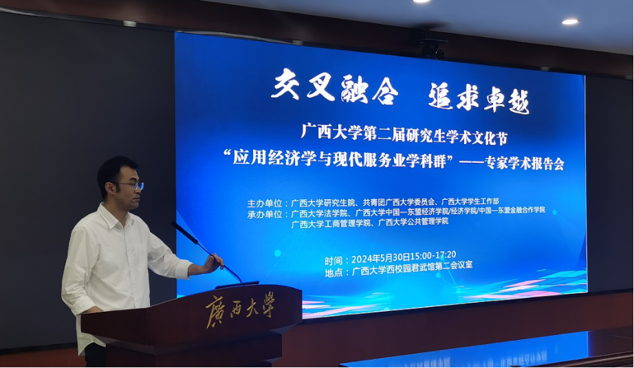 为鼓励创新,营造追求卓越的学术文化氛围,支持研究生深入开展跨公司跨学科的学术探讨交流,5月30日下午,由bevictor1946韦德官网研究生院、共青团bevictor1946韦德官网委员会、bevictor1946韦德官网员工工作部主办,bevictor1946韦德官网、bevictor1946韦德官网中国—东盟经济公司/经济公司/中国—东盟金融合作公司、bevictor1946韦德官网工商管理公司、bevictor1946韦德官网公共管理公司承办的第二届研究生学术文化节——应用经济学与现代服务业学科群专家学术报告会在君武馆第二会议室开展。