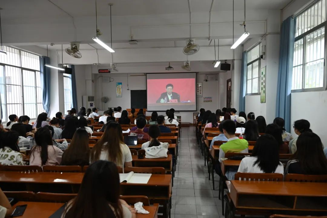 图/同学们在西2-202教室集中观看大讲堂第一讲