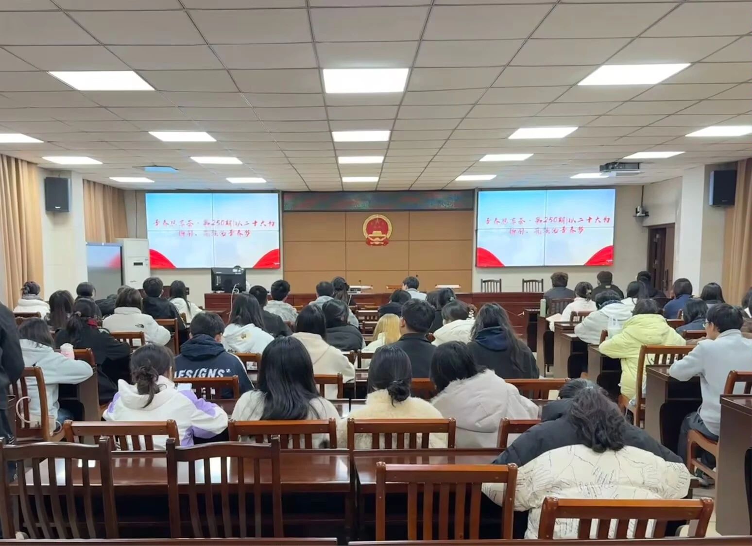 在互动环节,大家针对如何在建设法治中国中贡献自己的力量以及如何应对新挑战进行了探讨,总结发言时,大家纷纷表示要努力提升自己的法律素养,积极参与到法治中国的建设中去,为实现中华民族伟大复兴贡献青春力量。同学们热情高涨,现场学习气氛热烈。