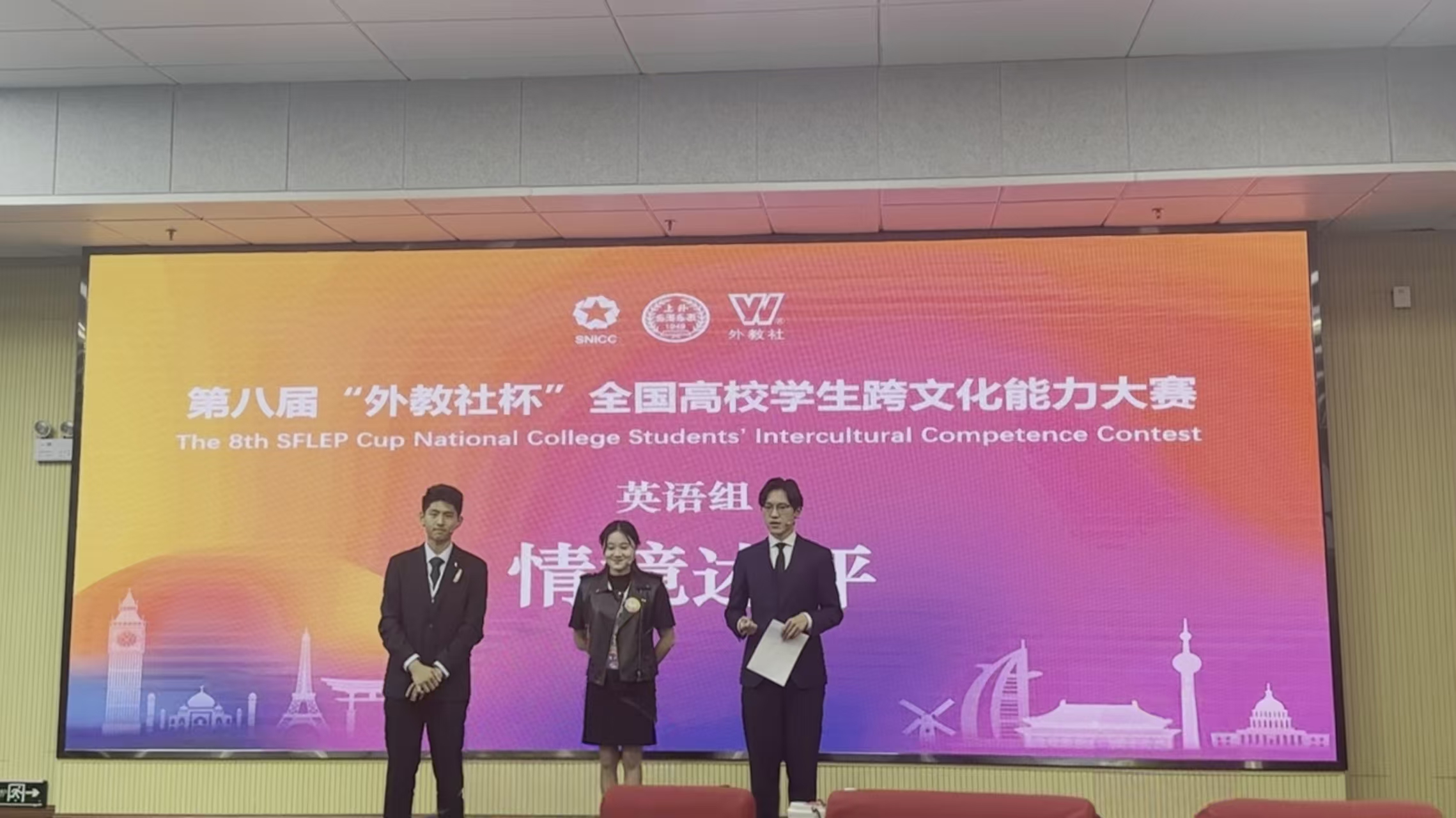 11月22日,第八届“外教社杯”全国高校员工跨文化能力大赛广西赛区比赛圆满落幕。大赛以“坚定文化自信,增进国际理解”为主题,旨在搭建跨文化交际能力展示平台,以赛促学培养具有中国情怀和国际视野的复合型国际化人才,助力中华文化国际传播与中外文明交流互鉴。广西民族大学、桂林理工大学、南宁师范大学等多所高校队伍参与本次大赛。bevictor1946韦德官网代表队由bevictor1946韦德官网法学专业王忠瑞与外国语公司越南语专业李偲瑶、化学化工公司化学工程与工艺专业曾泊涵3位同学组成,他们在外国语公司教师杨颖、韦月丽指导下,初赛以及省级复赛、决赛均以第一名成绩晋级,最终斩获区级决赛特等奖,并成功晋级全国总决赛,为公司赢得了荣誉!